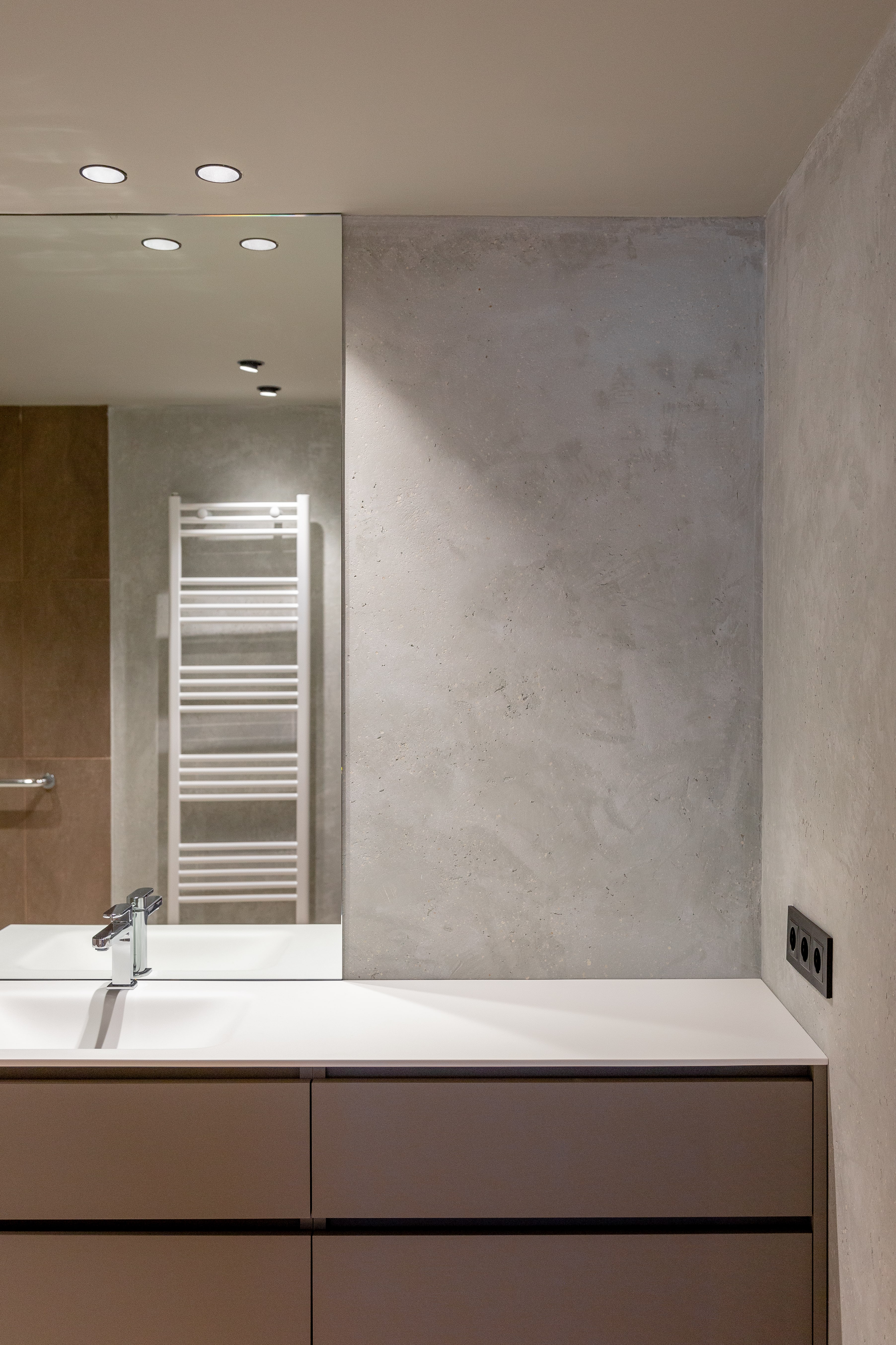 Projecte d’interiorisme complet per a un àtic. Mitjançant l’enderroc controlat dels tabics que trituraven l’espai s’aconsegueix un esponjament de la zona de cuina i menjador creant un espai ampli i únic que aconsegueix linkar-se a l’habitació suite i poder ser viscut com un “loft” per una parella, i alhora, sorgeix una segona capa habitacional per convidats esporàdics al perímetre més exterior del pis.